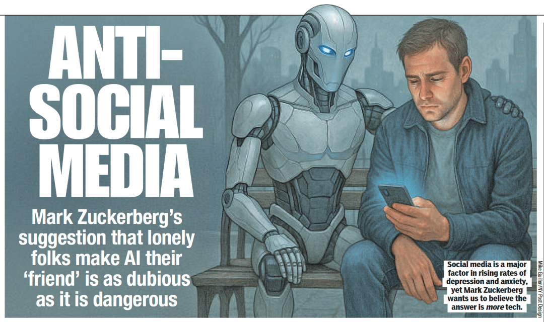 Meta CEO Mark Zuckerberg thinks you can top up your friends network with "AI friends." At the New York Post, Andrew explains why that's terrible advice that won't fix our loneliness problem.